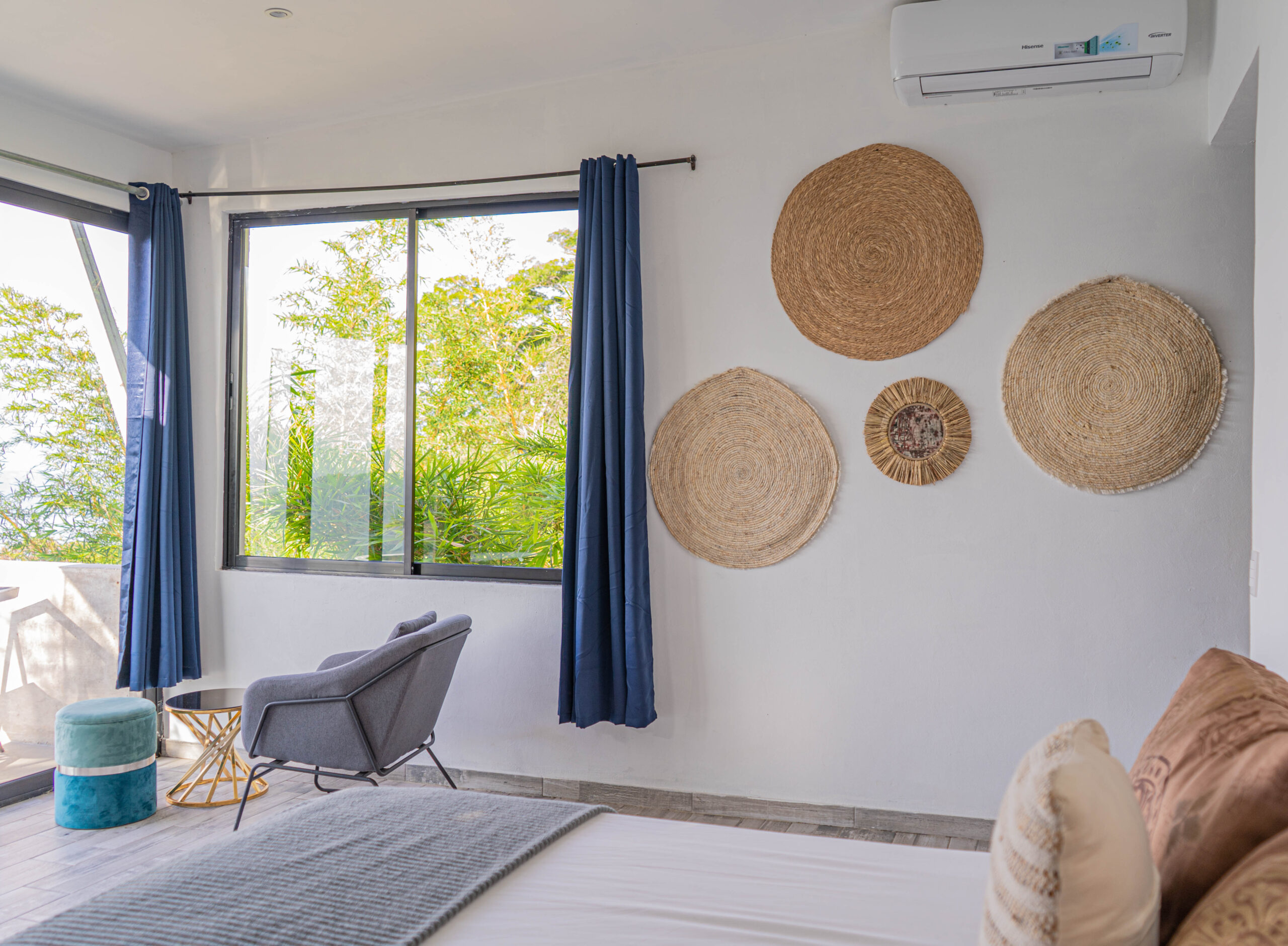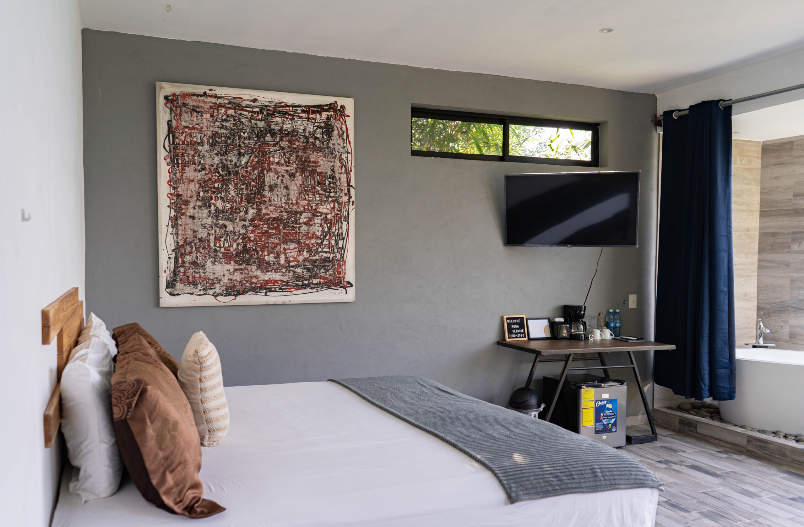 Welcome to the “Cinco 5” luxury suite in our charming hotel in the heart of the tropics. This stunning room has been meticulously designed to offer an unparalleled accommodation experience, combining comfort, elegance, and spectacular views.Upon entering, you’ll be greeted by an atmosphere of serenity and sophistication. The spacious room is adorned with exquisite details that reflect tropical charm, from warm, natural tones to decorative elements inspired by the surrounding nature.